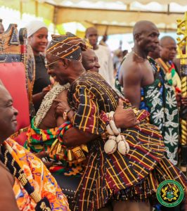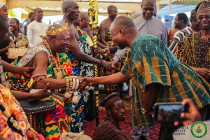 The National Chairman of the National Democratic Congress (NDC), Johnson Asiedu Nketiah, and the Bono East Regional Minister, Hon. Francis Owusu Antwi, joined the Mo Traditional Council in Kintampo to celebrate this year’s Annual Pedia/Yam Festival, held under the theme “advancing unity through culture.”