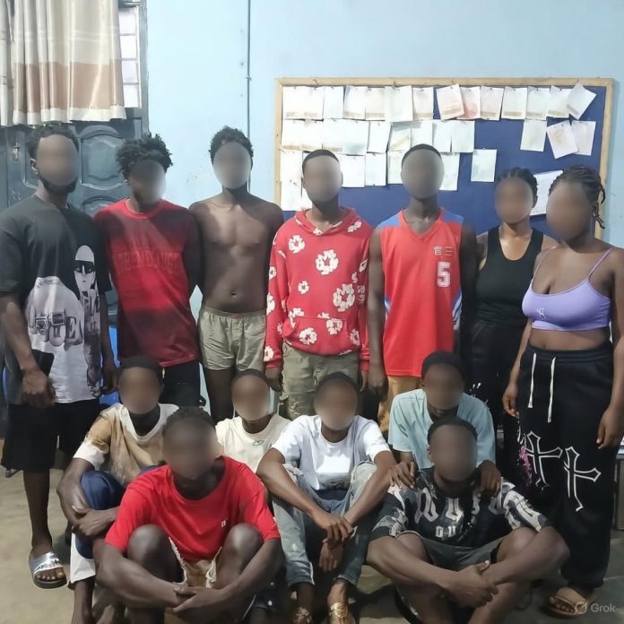 Authorities focused on several areas known as hubs for unlawful behavior. In Abamu, 13 people were apprehended, including Mubarack Alhassan (26), Amoako Prosper (28), Manarf Inusah (19), Owusu Amos (23), Suleman Mudasel (18), Comfort Frimaa (20), Samuel Nimoh (22), and Ridwan Mohammed (21), along with others.
